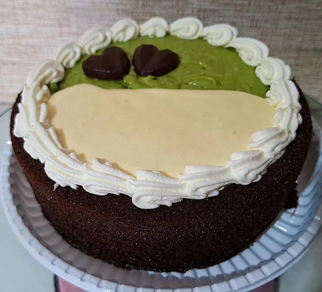 Delicioso bolo piscina de Pedaços de pistache ou farinha de pistache são adicionados ao creme de leite Ninho ou usados como cobertura para a "piscina". O pistache oferece um sabor característico e sofisticado, além de uma textura crocante que contrasta com a maciez da massa e a cremosidade do recheio.